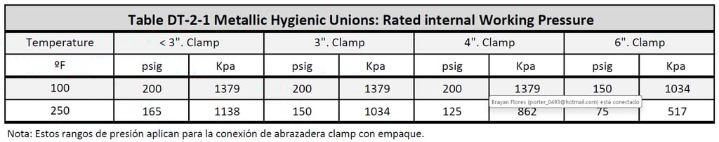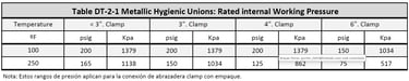 Los accesorios metálicos fabricados según este código deberán cumplir o exceder las clasificaciones de presión que se muestran en la tabla siguiente: