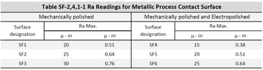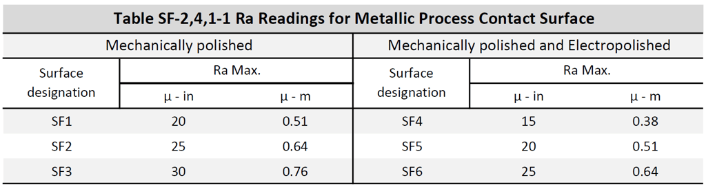 Nuestros accesorios BPE están disponibles con acabados de superficie SF1 pulidos mecánicamente y electro-pulidos SF4. Los mate-riales son medidos con un rugosímetro para garantizar que no se excedan los limites dispuestos de rugosidad superficial (Ra)