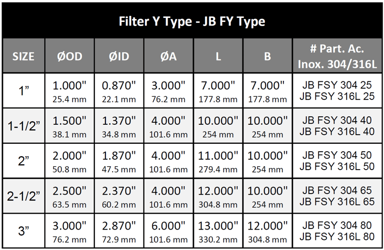 Tamaños disponibles: 1”, 1-1/2”, 2”, 2-1/2” y 3” .