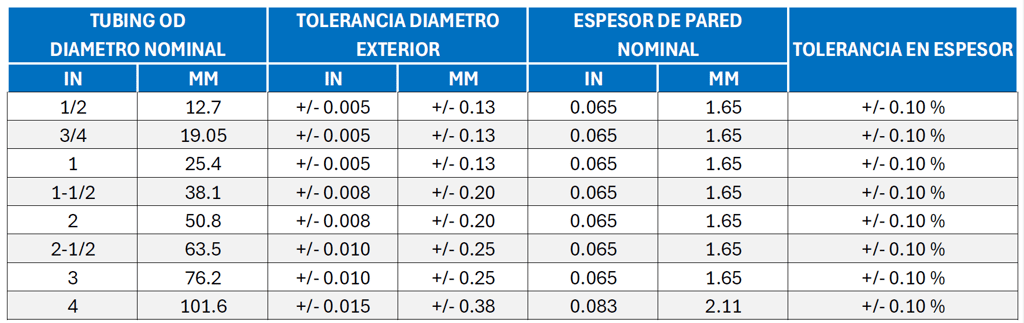 • Tubería soldada conforme a ASTM A270/A249/B676 y ASME SA249/SB676
