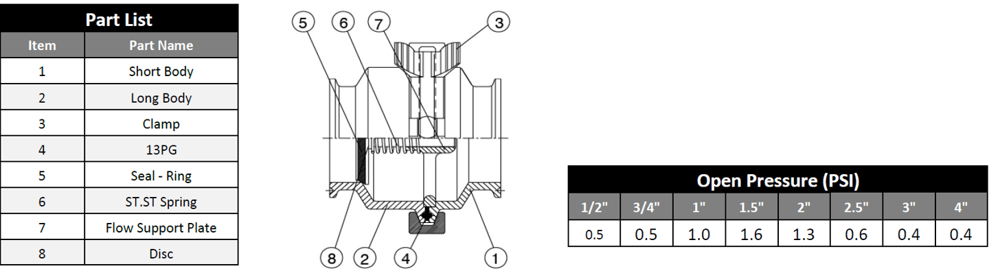 Válvula Check extremos Clamp