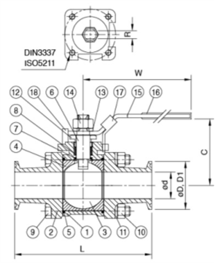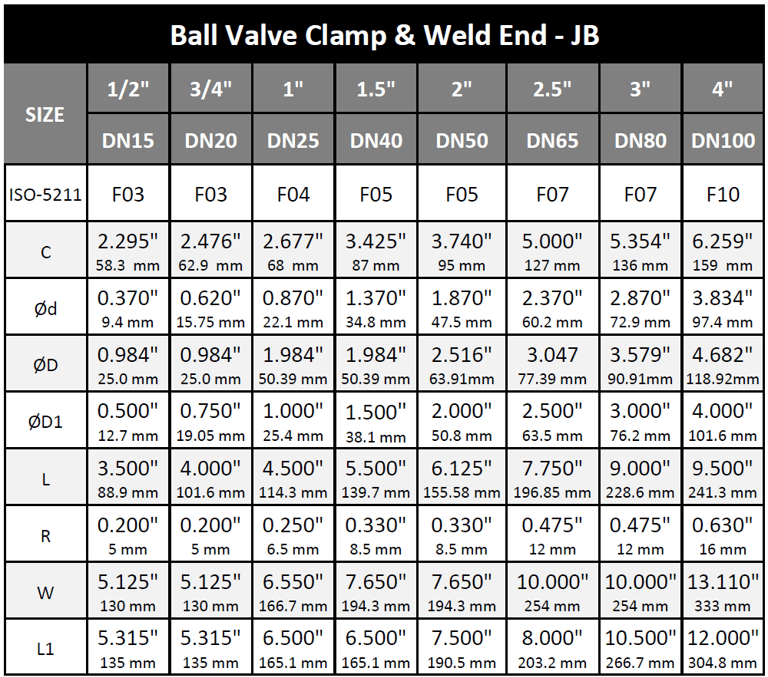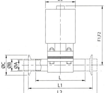 Válvula de Bola, extremos soldable y clamp, con accionamiento Neumática/Manual