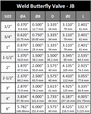 Válvula de Mariposa Soldable